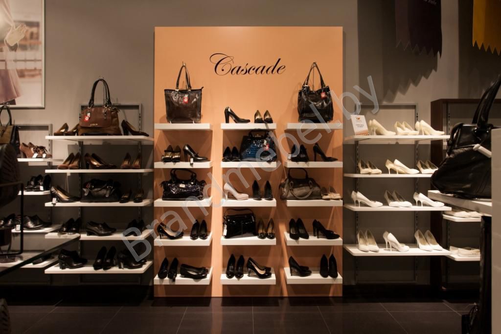 Белые навесные полки в сочетании с каркасными конструкциями.
