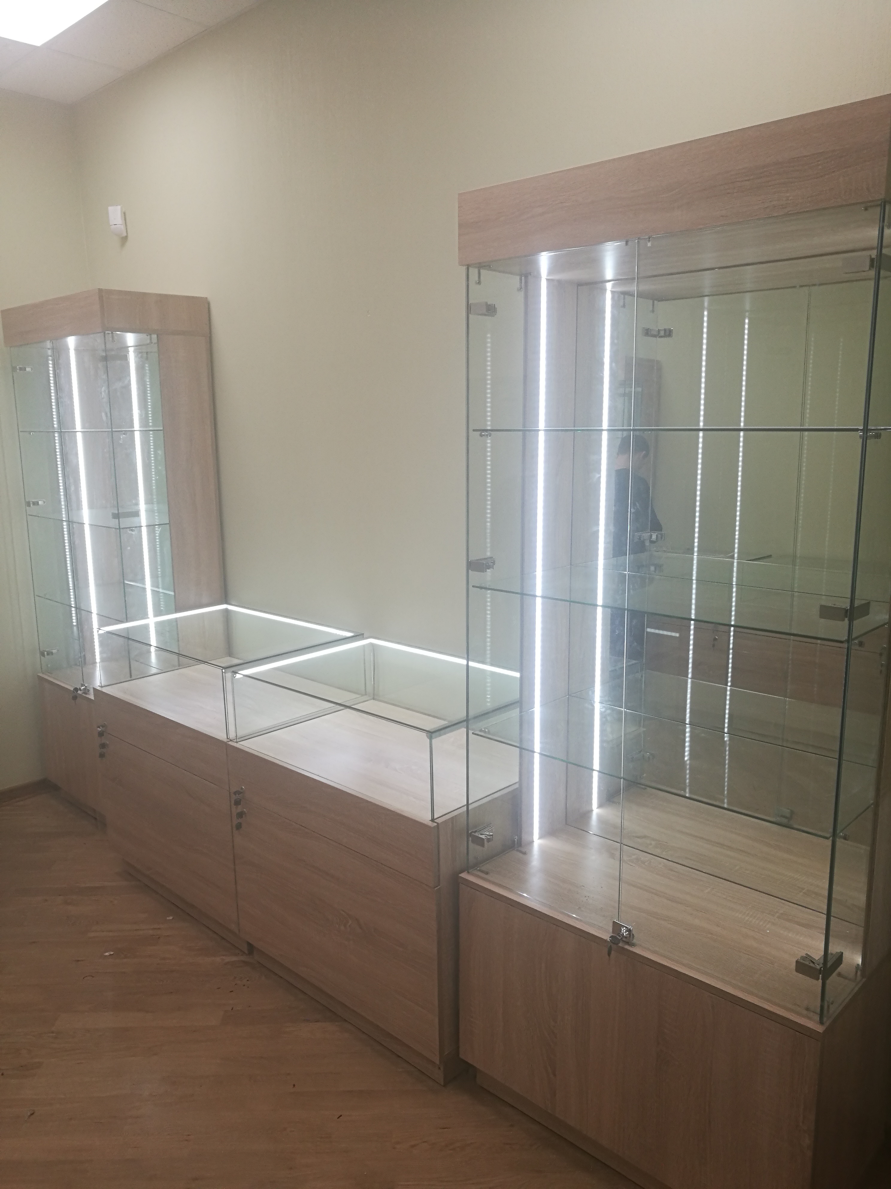 Торговое оборудование (остров) из МДФ крашенного и стекла