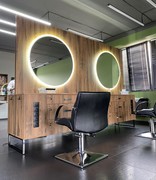 Мебель в салон красоты - 4 рабочих места. Изготовлена из ЛДСП, опора труба профильная, зеркало круглое с подсветкой.