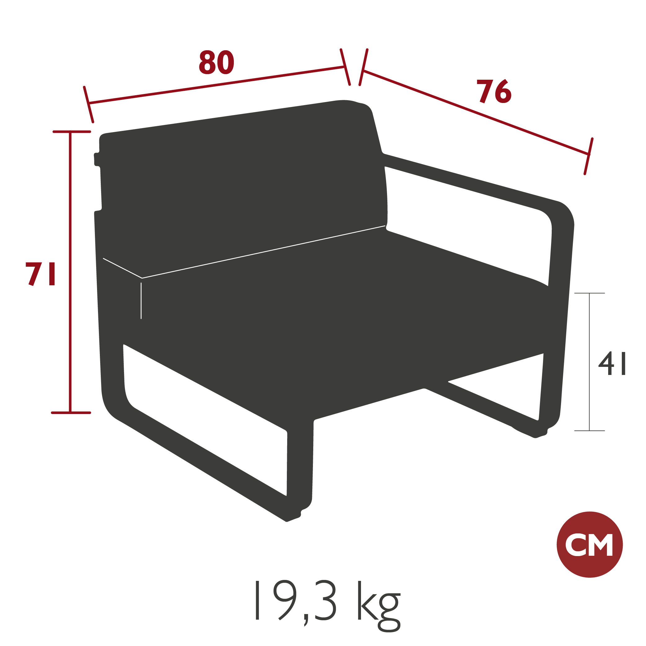 Размер (ДхШхВ): 80х76х71 см.