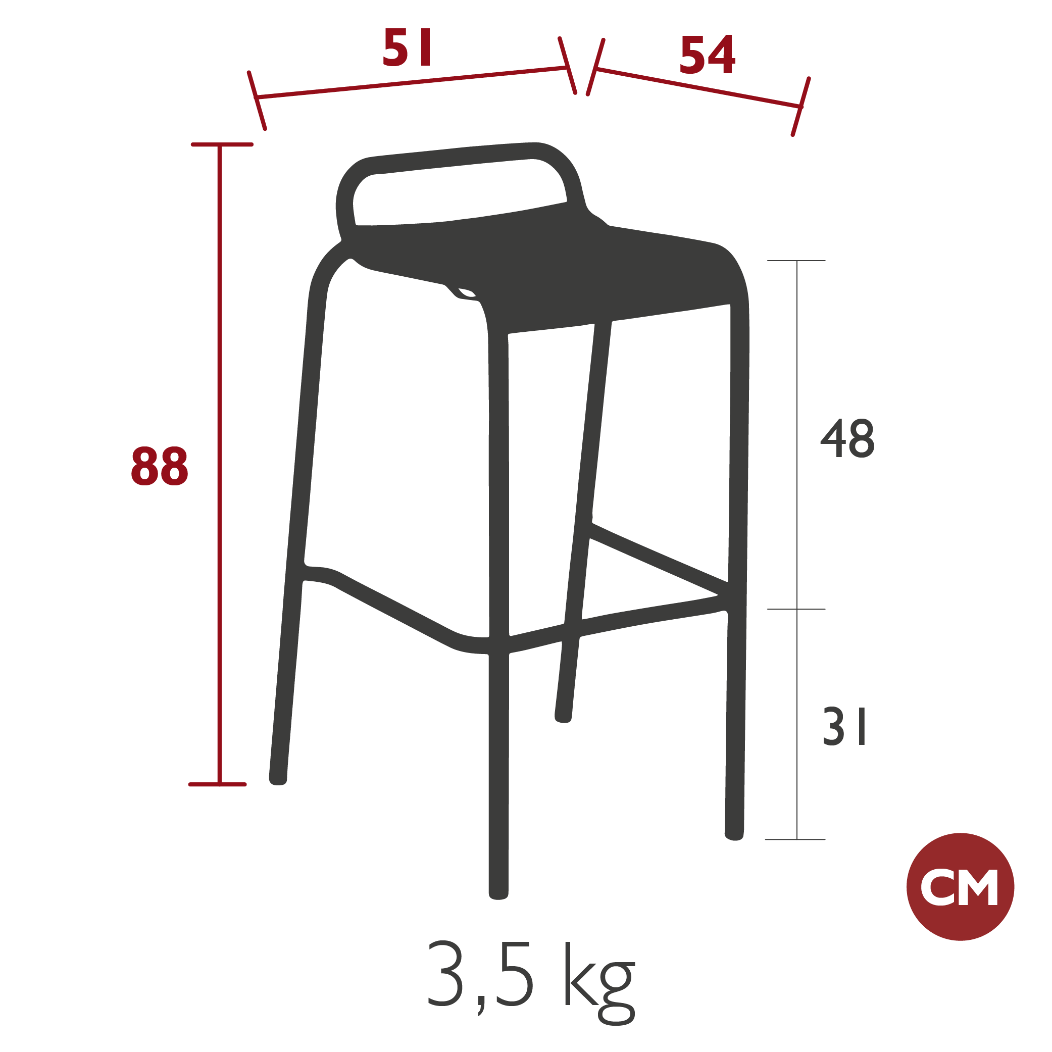 Размер: Д54xШ51xВ88 см.