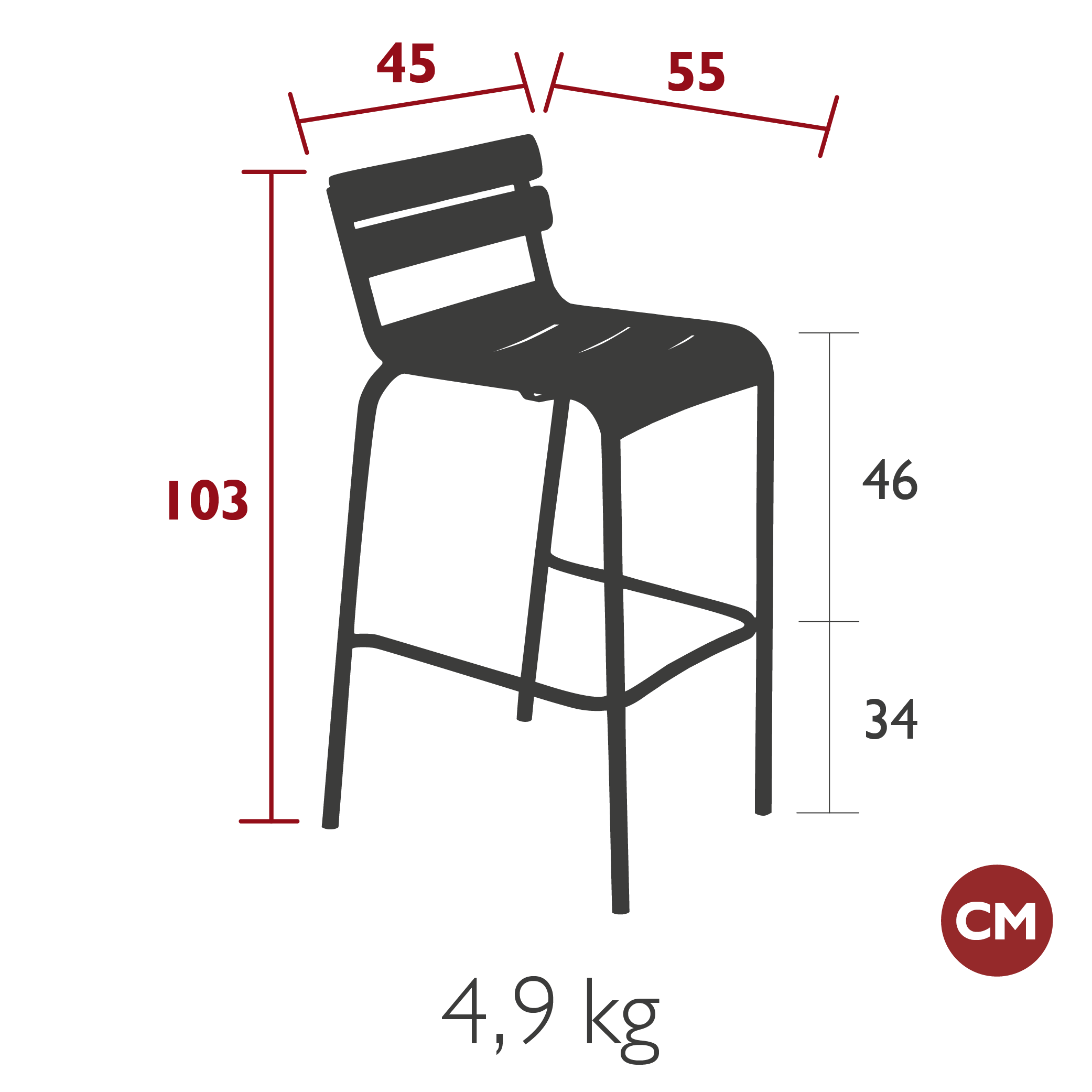 Размер (ШхГхВ): 42x48x77 см. Материал: ударопрочный алюминий, ткань.