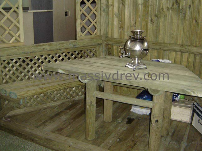 Изготовлен из натурального материала (сосна), покрыт влагоотталкивающей пропиткой.
