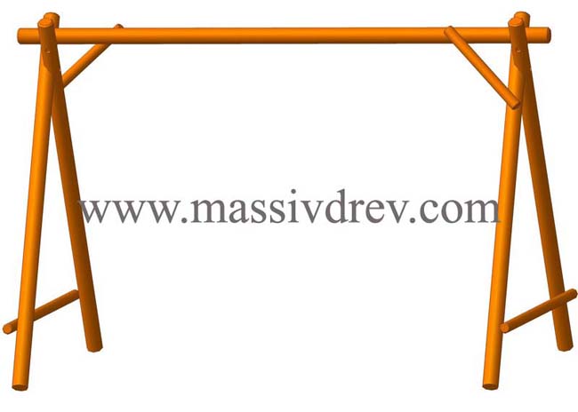 Ярким представителем для оформления игровой площадки являются детские качели из массива сосны. Это огромная конструкция позволит подвесить различные качели или гимнастические кольца для детей и гамак для взрослых. В полный комплект входят инструкция по сбору и металлические крепления, а для устойчивости, нужно вкопать модель в землю до уровня горизонтальных перекладин.