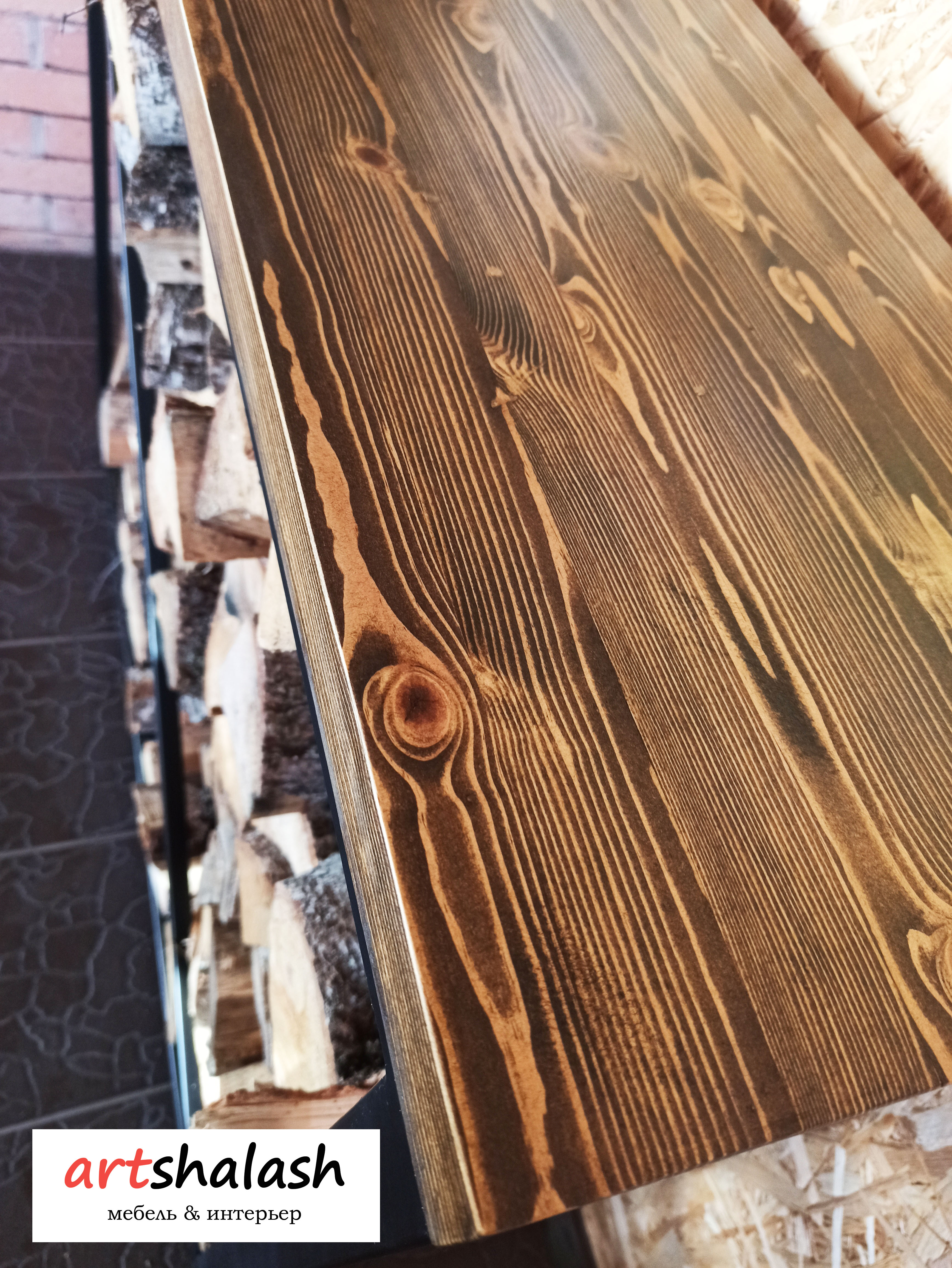 Столешница: дуб 20 или 40 мм/сосна 28 или 40 мм, покрытие - масло (цвет на выбор).