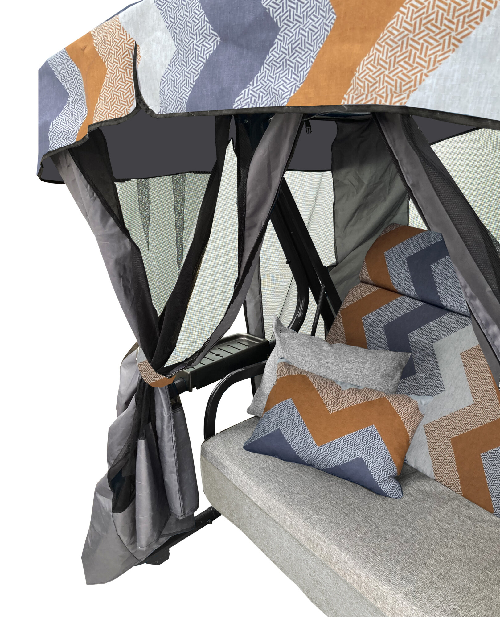 код 157132Удобные и прочные садовые качели на стальном каркасе и тентом из водоотталкивающей ткани.