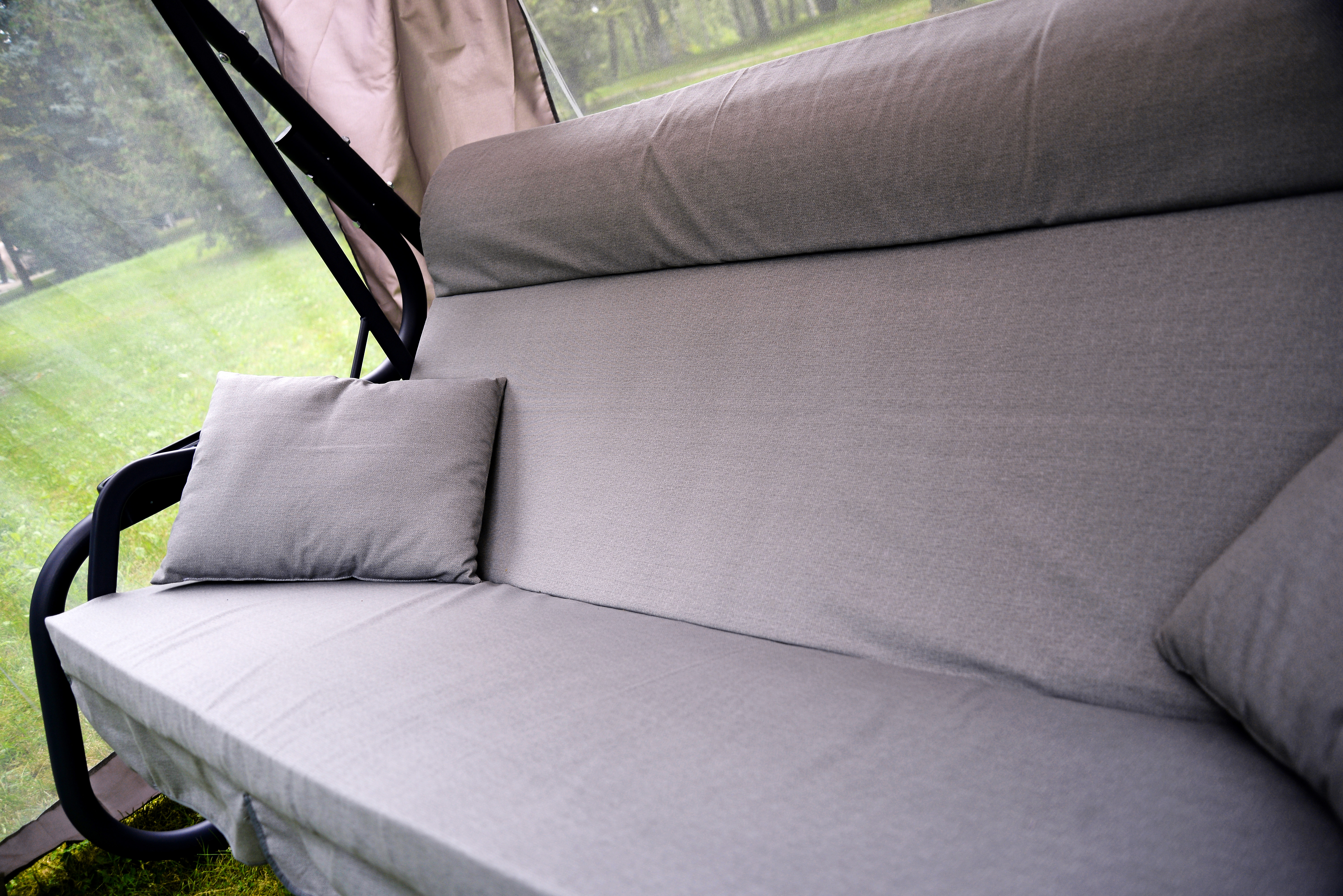 Тент: тент ткань с водоотталкивающей отделкой 100% п/э плотность 120г/м2, с противомоскитной сеткой (полотно гардинное основовязаное 100% п/э плотность 39г/м2) - фиксация сетки на тканевом тенте осуществляется с помощью горизонтальных и вертикальных застежек – «молний».