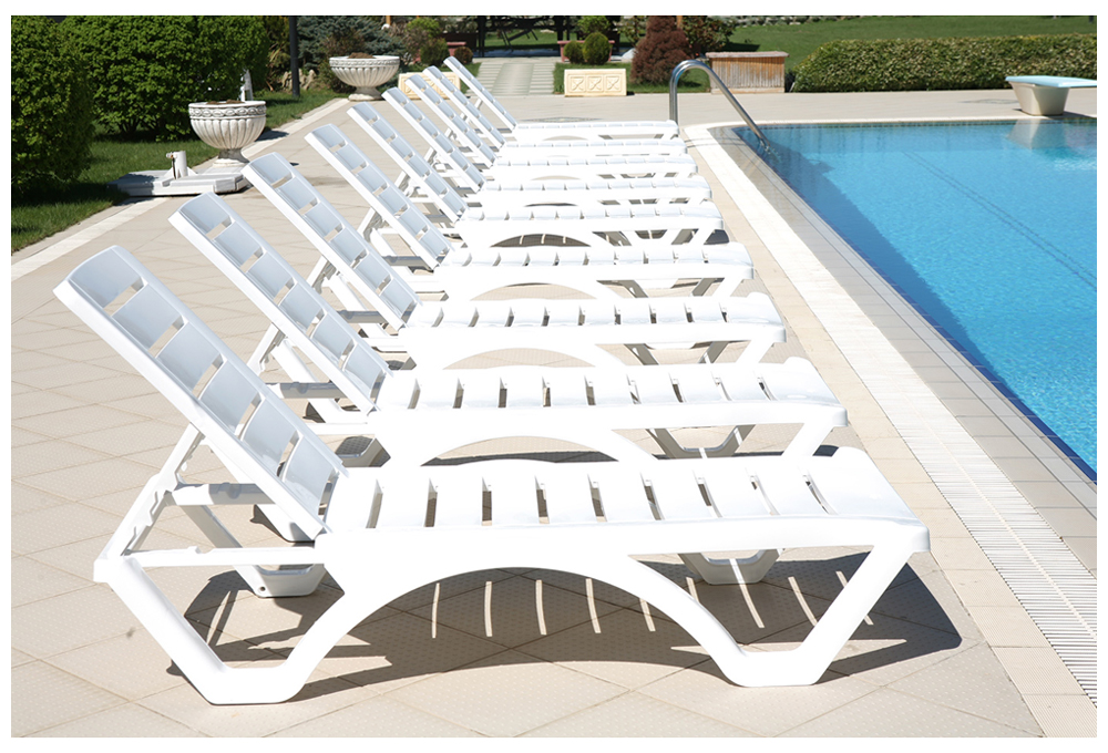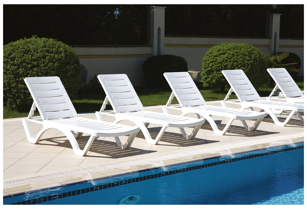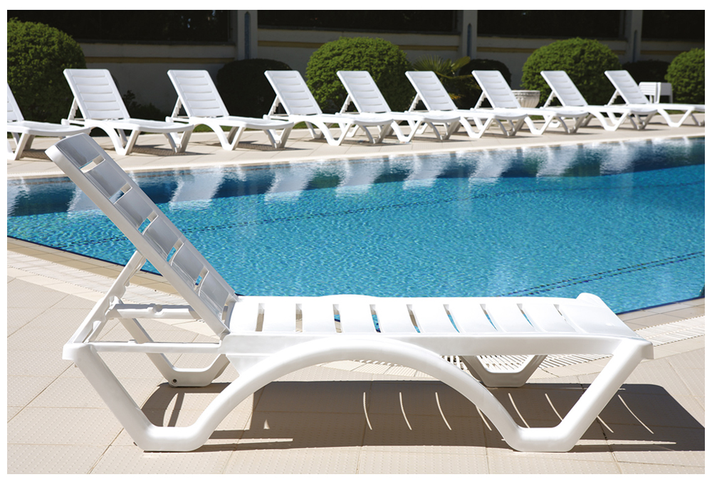 Лежак «Aqua» изготовлен из пластика и оснащен прочным каркасом. Изогнутые ножки добавляют устойчивости конструкции. Две ножки укомплектованы колесиками для облегчения перемещения лежака на другое место. Спинка регулируется, начиная с горизонтального положения.