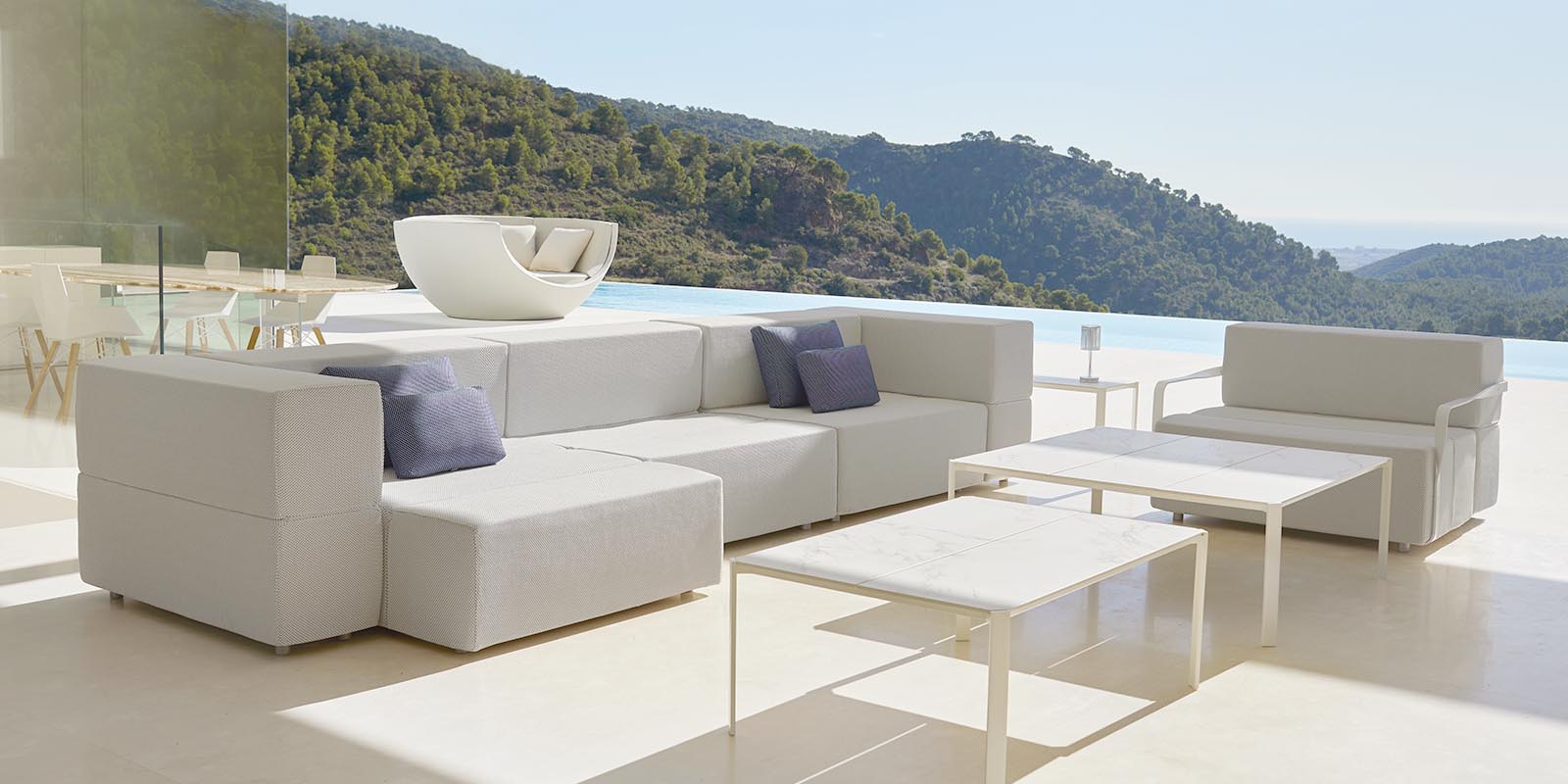 Модульный диван, изготовленный из гибкого пенополиуретана. Полностью обит тканями, специально разработанными для использования на открытом воздухе, при этом сохраняющими тепло и комфорт, характерные для интерьерных тканей. Ткани доступны в широком ассортименте цветов, что позволяет создавать абсолютно уникальные, индивидуальные и уютные пространства. Коллекция подходит как для использования внутри помещений, так и на улице