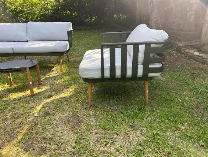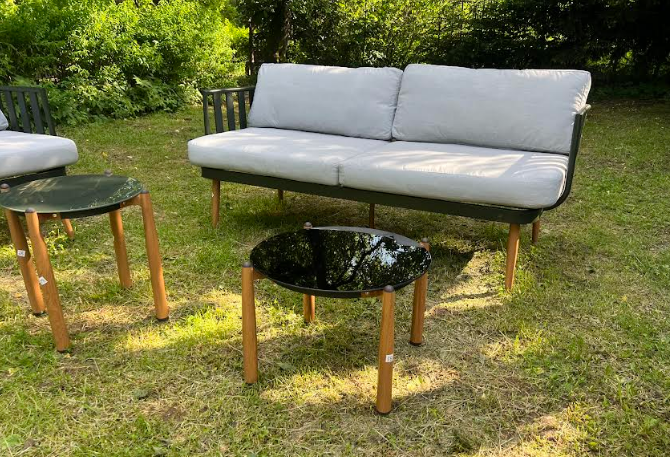 код 150104Комплектация: 2 столика, 2 кресла, диван. Материал, сталь, полиэстер.