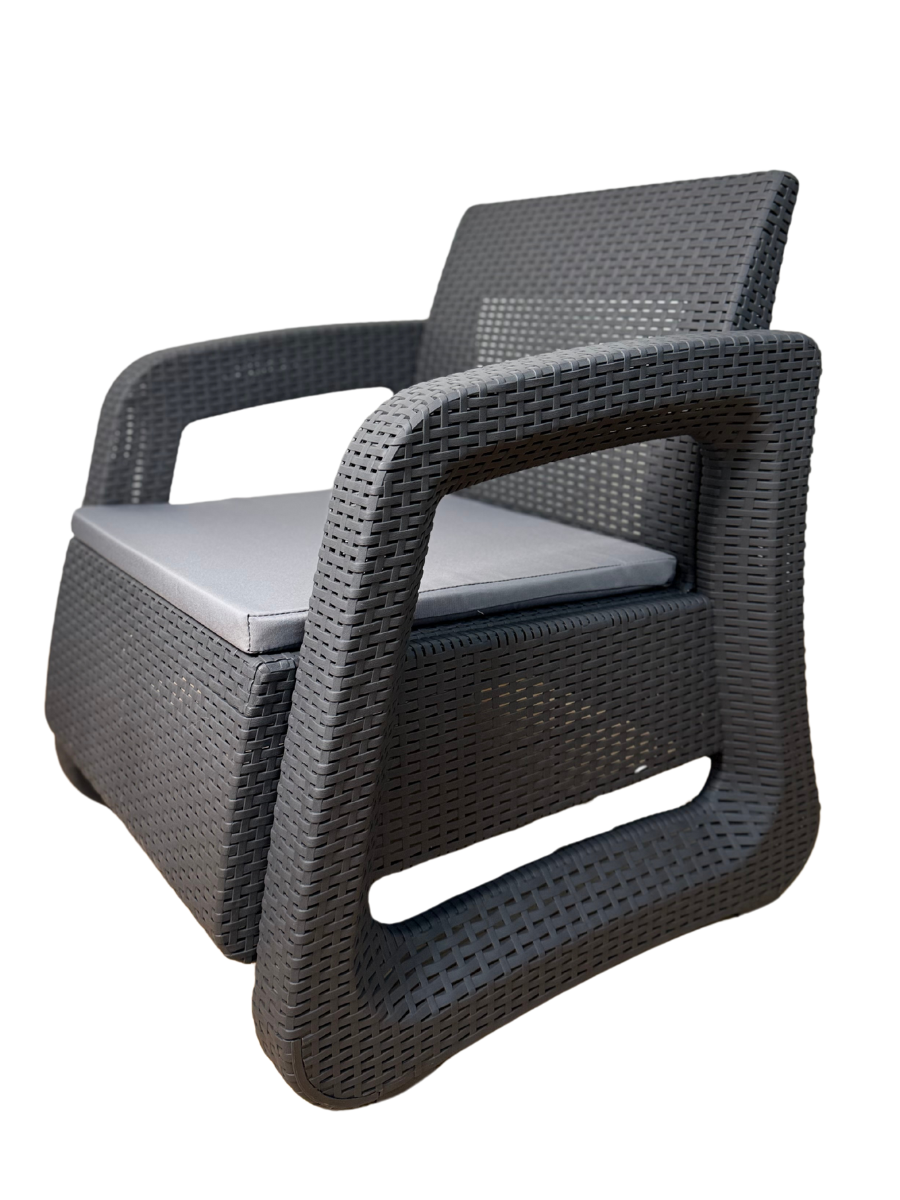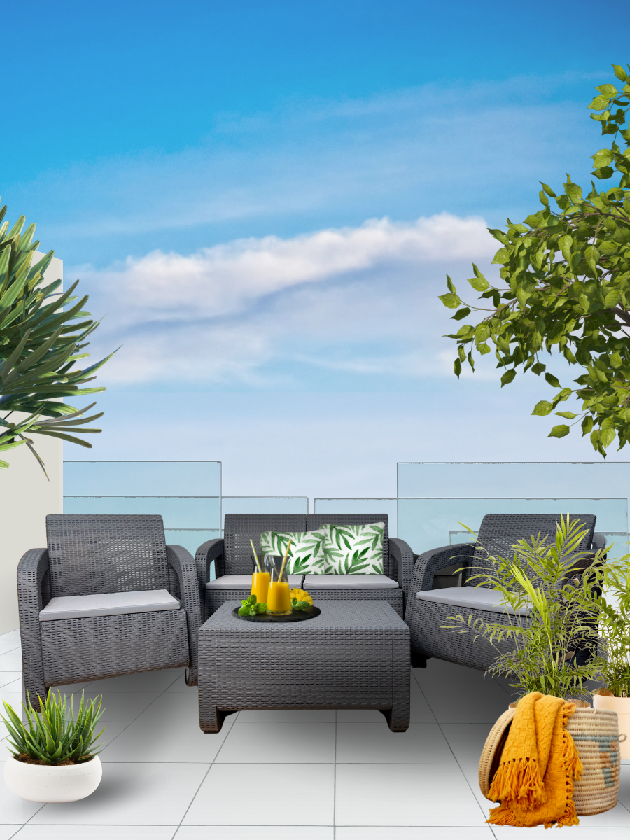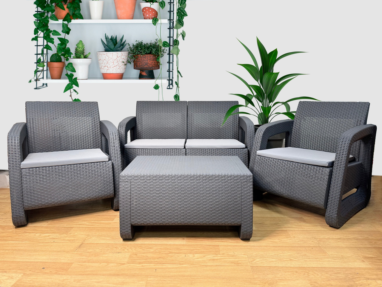код 148546В наборе: двухместный диван, два кресла, столик. Материал: полипропилен.