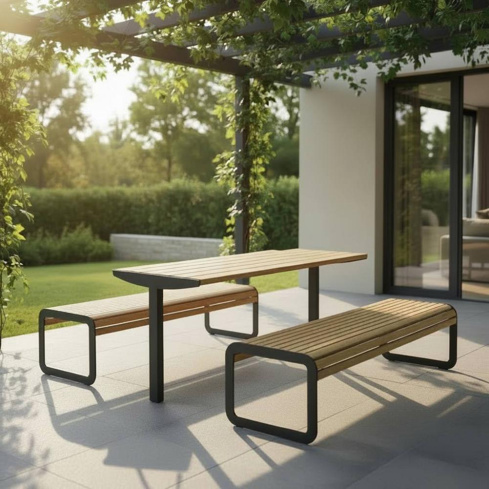 код 156598Комплектация: Стол, 2 лавки. Материал: металл, доска хвойных пород.