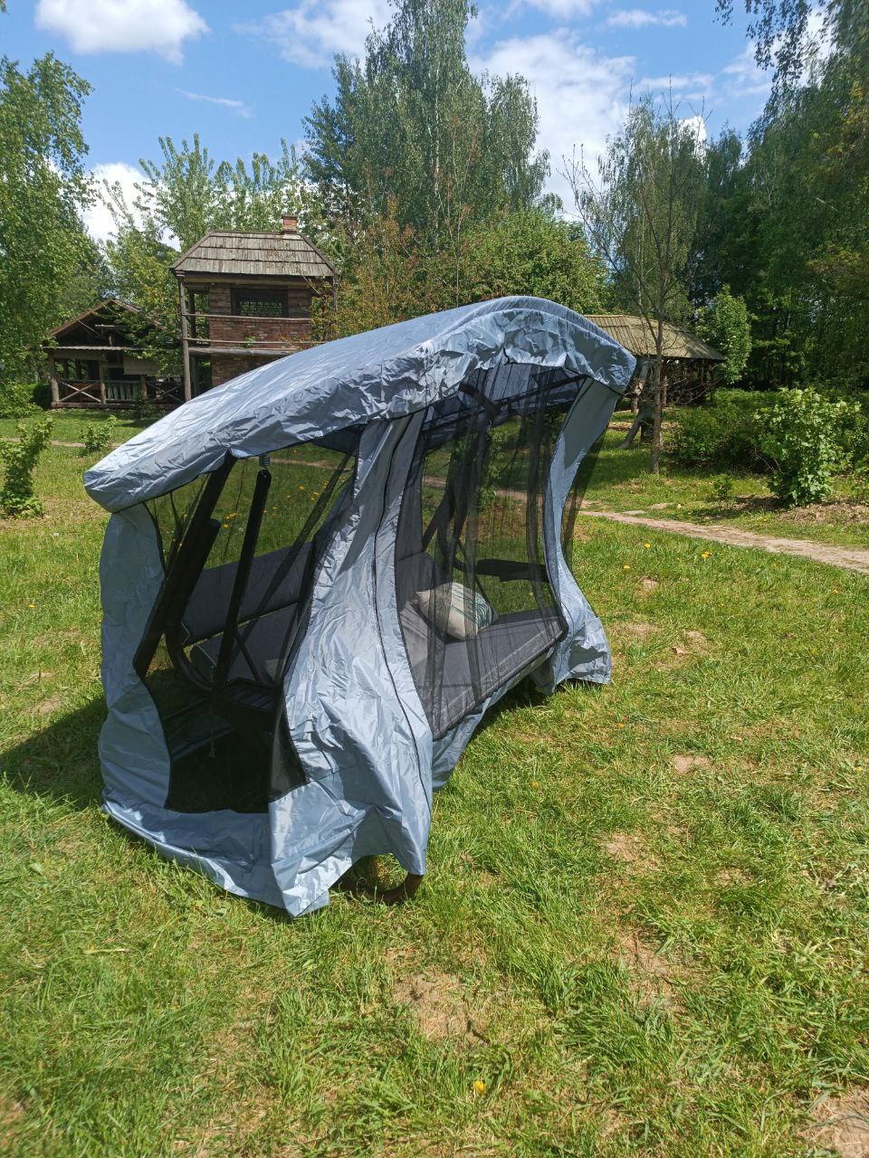 - Защита от солнца – прочный тент из плотной ткани (200-220 г/м²) с водоотталкивающей пропиткой создает тень и укрытие от дождя.