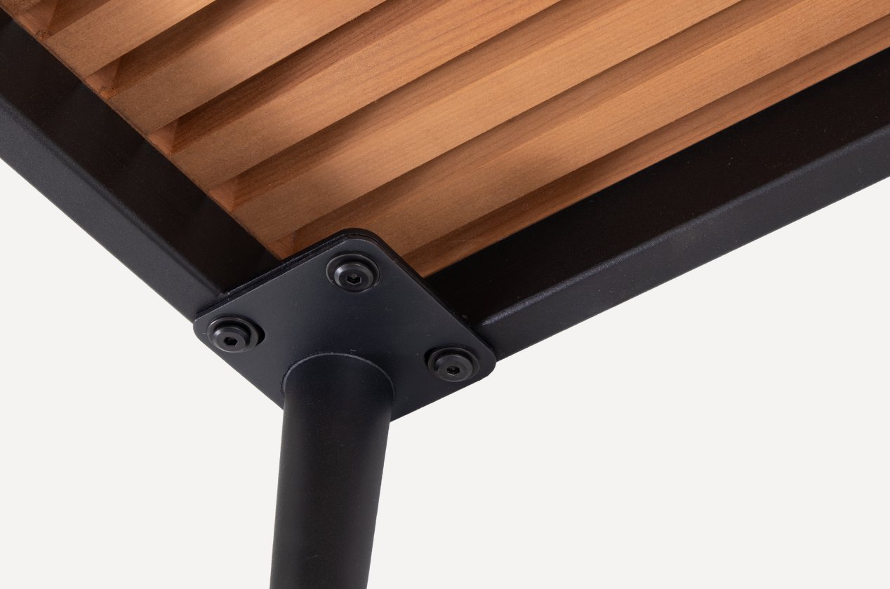 Размер (ДхШхВ): 234х195х139 см. Материал: алюминий, дерево ироко, ткань.
