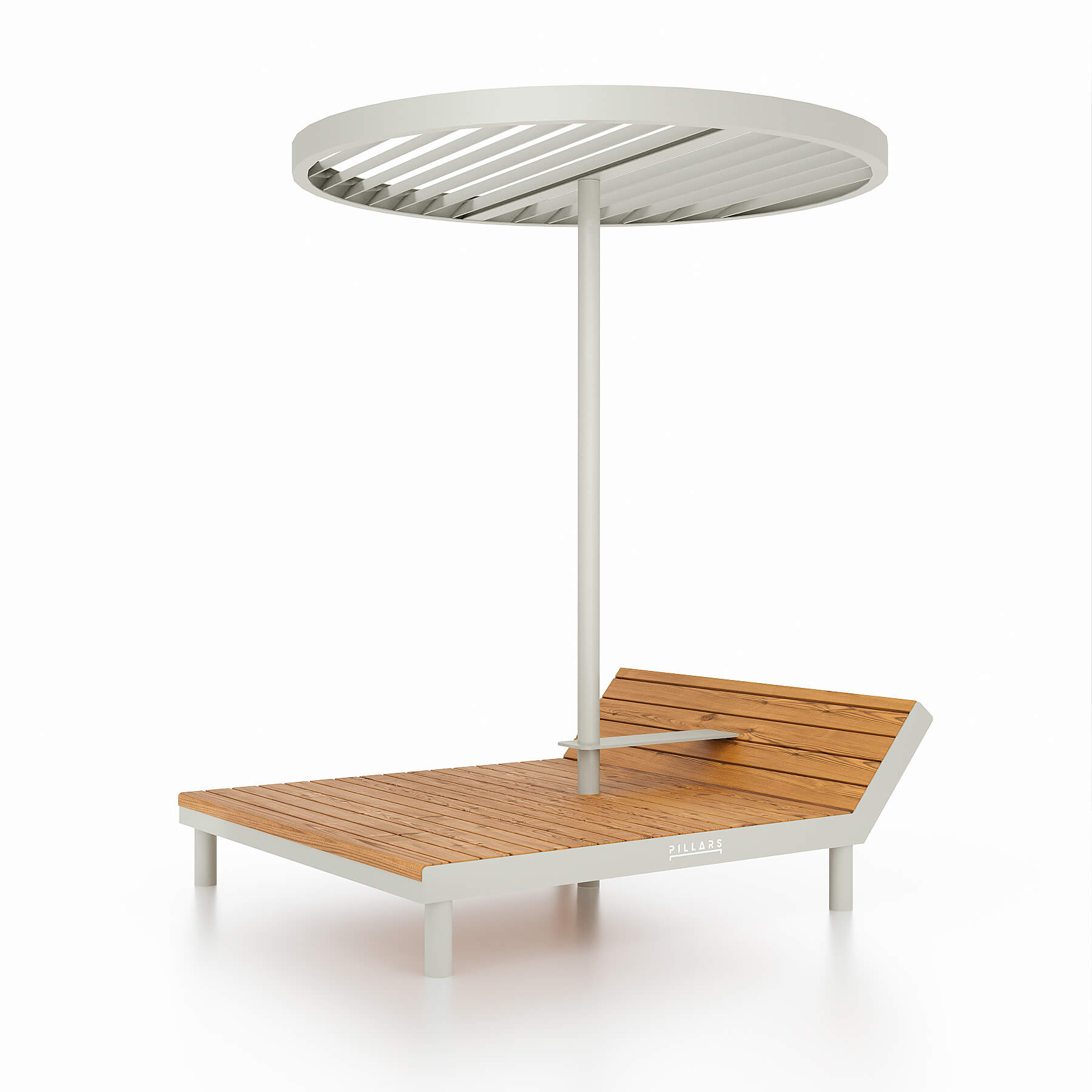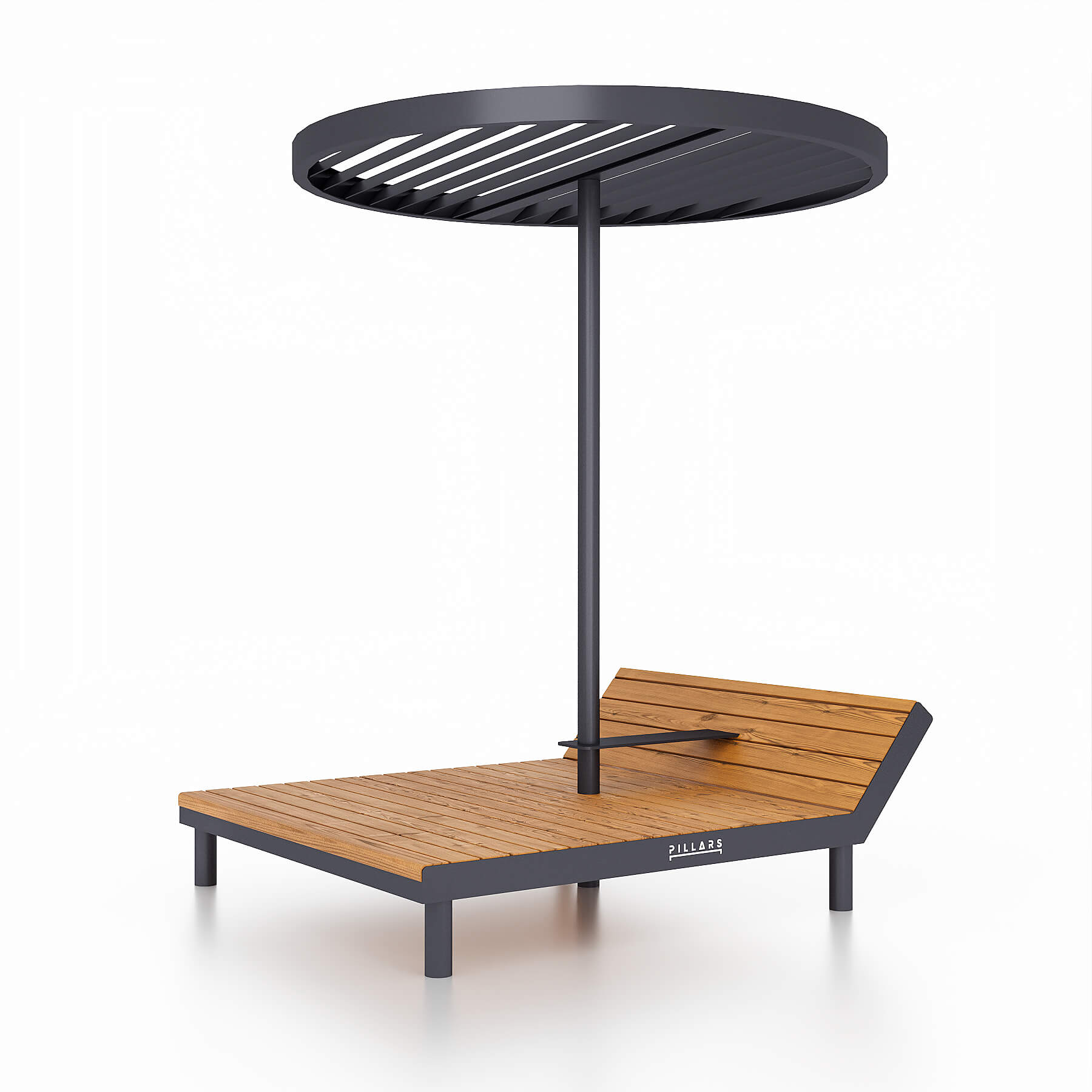 Деревянный шезлонг для двоих Classic 2 с навесом от Pillars представляет собой идеальное сочетание комфорта и стиля для наружного пространства. Конструкция выполнена из металла с защитой от коррозии методом горячего цинкования и оборудована деревянными элементами из лиственницы. Навес защищает от прямых солнечных лучей, создавая уютную тень в жаркие дни. Дизайн шезлонга универсален, что позволяет его интегрировать в любое пространство от частных садов до общественных парков. Покрытие можно выбрать в любом цвете из палитры RAL, что делает его легко адаптируемым к различным дизайнерским решениям.