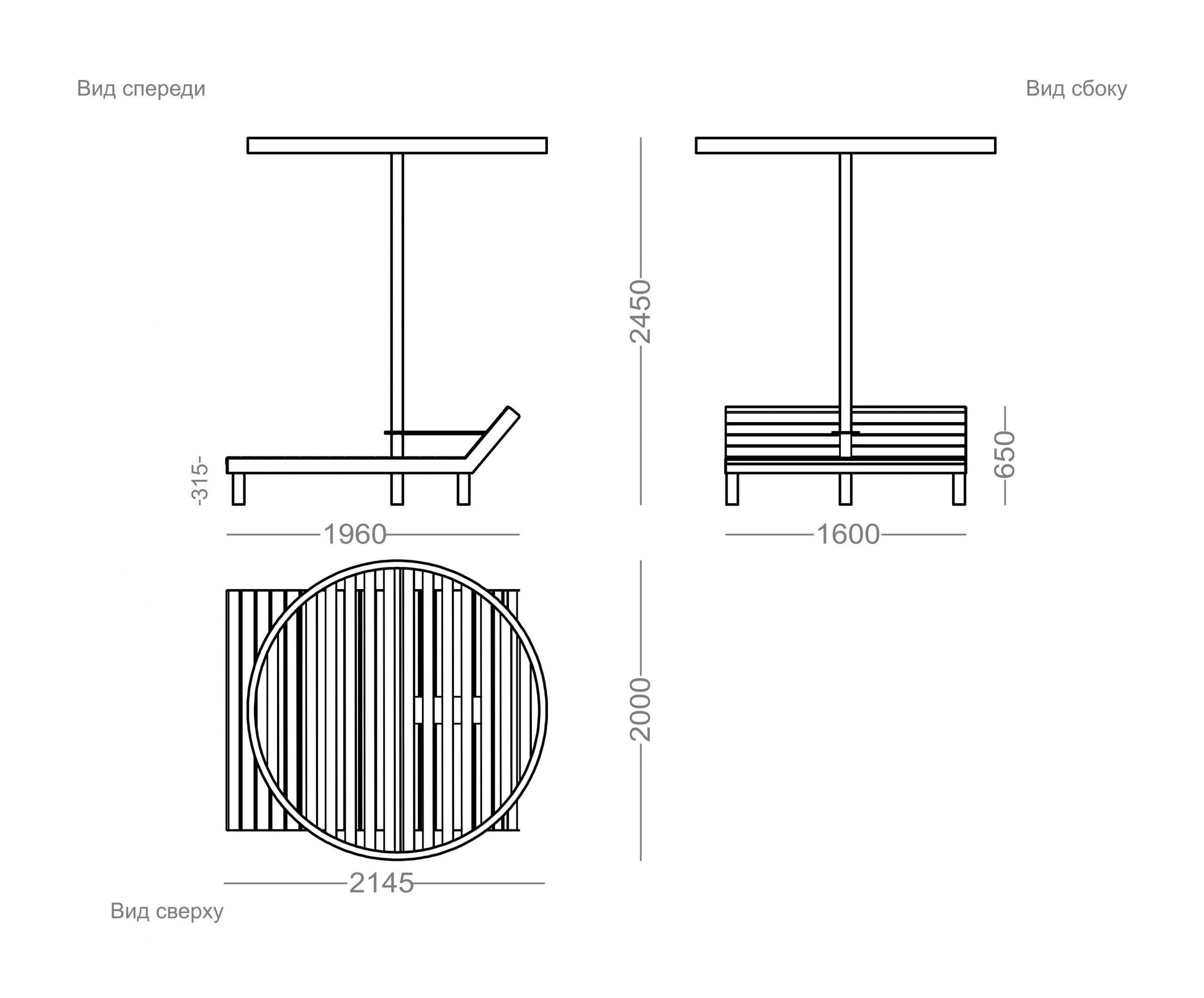 Адаптируемая под любое пространство. Подходит для использования на улице в любых погодных условиях. Материал: алюминий, ткань.