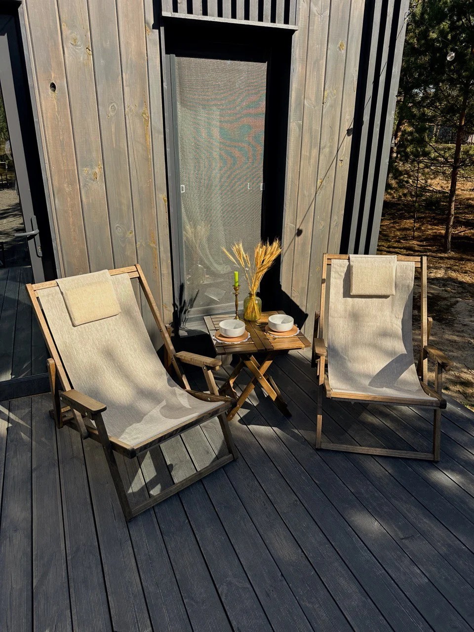 Шезлонг с подлокотниками (массив березы)