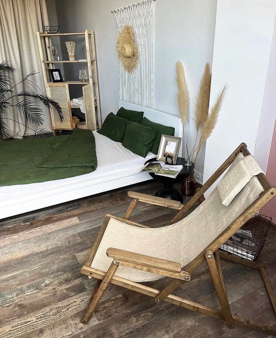 Размер: 68х4,5х135 см. Материал: массив березы. Ткань: натуральный лен.