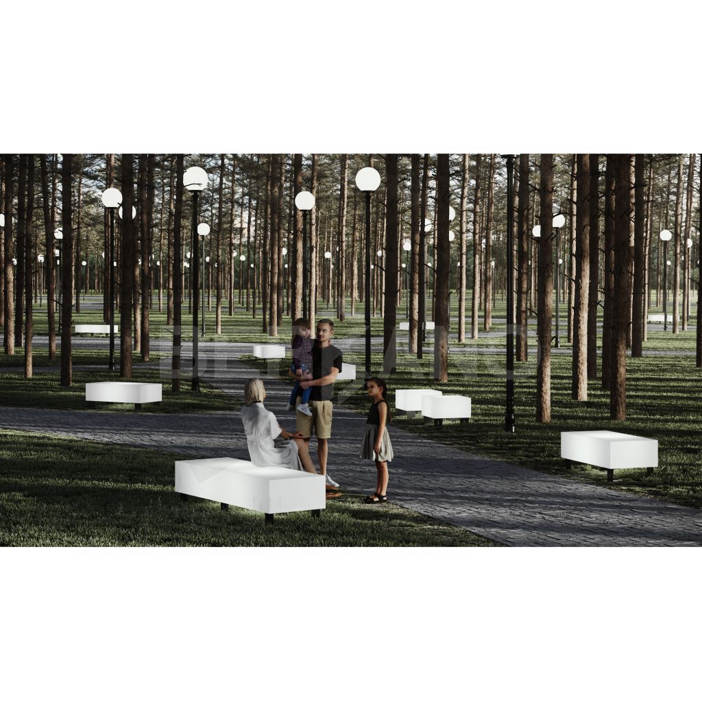 Brick совмещает в себе предмет мебели с опцией подсветки: внутри скамейки можно разместить плафон, который защитит лампу от влаги и внешних воздействий. Широкие металлические ножки обеспечивают устойчивость изделия, что особенно важно при установке на газонах. Для удобной посадки предусмотрена оптимальная высота скамьи.