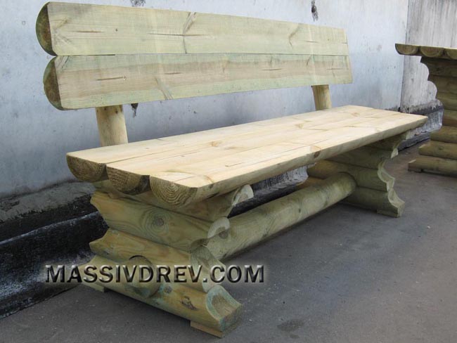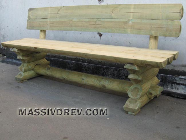 Рубленая скамья со спинкой прекрасное дополнение к рубленому столу. Скамья изготовлена из срубов сосны и покрыта антисептиком, который защищает древесину от гниения. Размеры сиденья позволяют усадить большое количество людей, а спинка предназначена для еще большего комфорта.