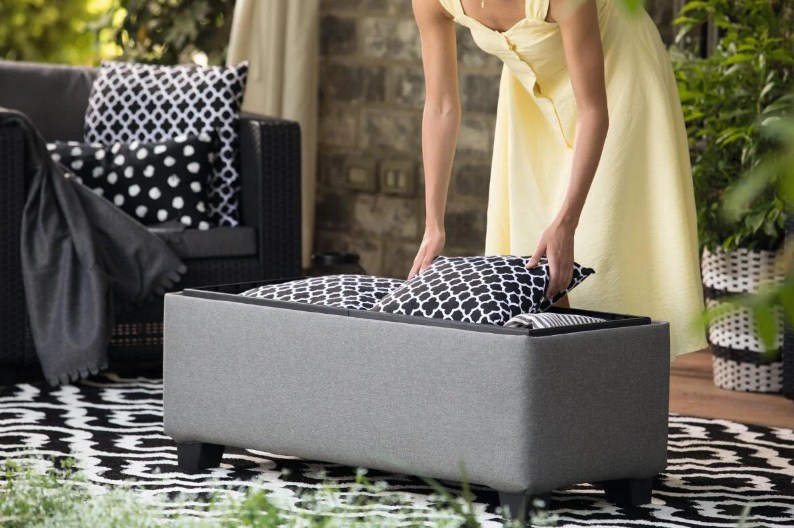 Многофункциональное сиденье и место для хранения. Он отличается прочной, укрепленной металлическими элементами, конструкцией и механизмом закрытия крышки. Благодаря использованию водостойкой, устойчивой к ультрафиолетовым лучам, защищенной от плесени и быстросохнущей пены ящиком можно пользоваться вне зависимости от времени года. Предназначен для гарнитуров садовой мебели для балконов, патио и участков.