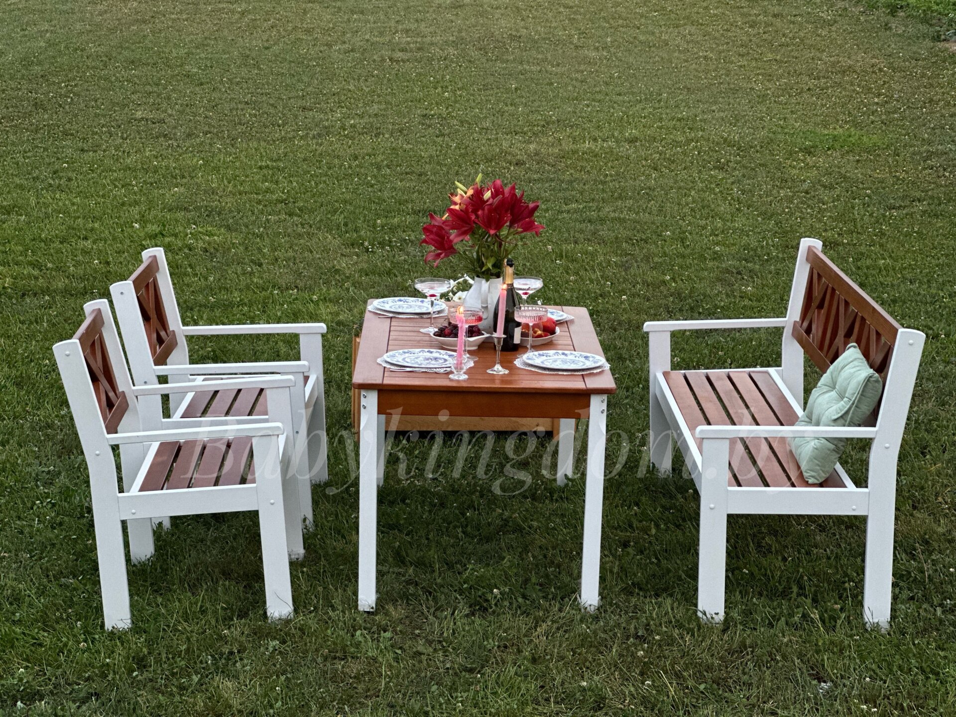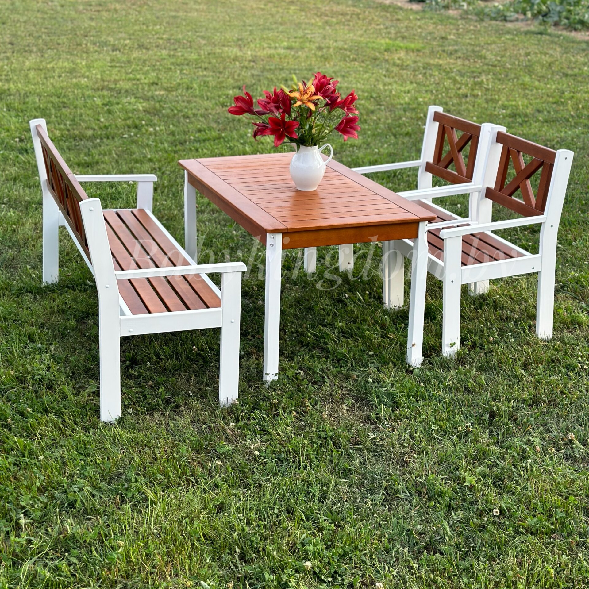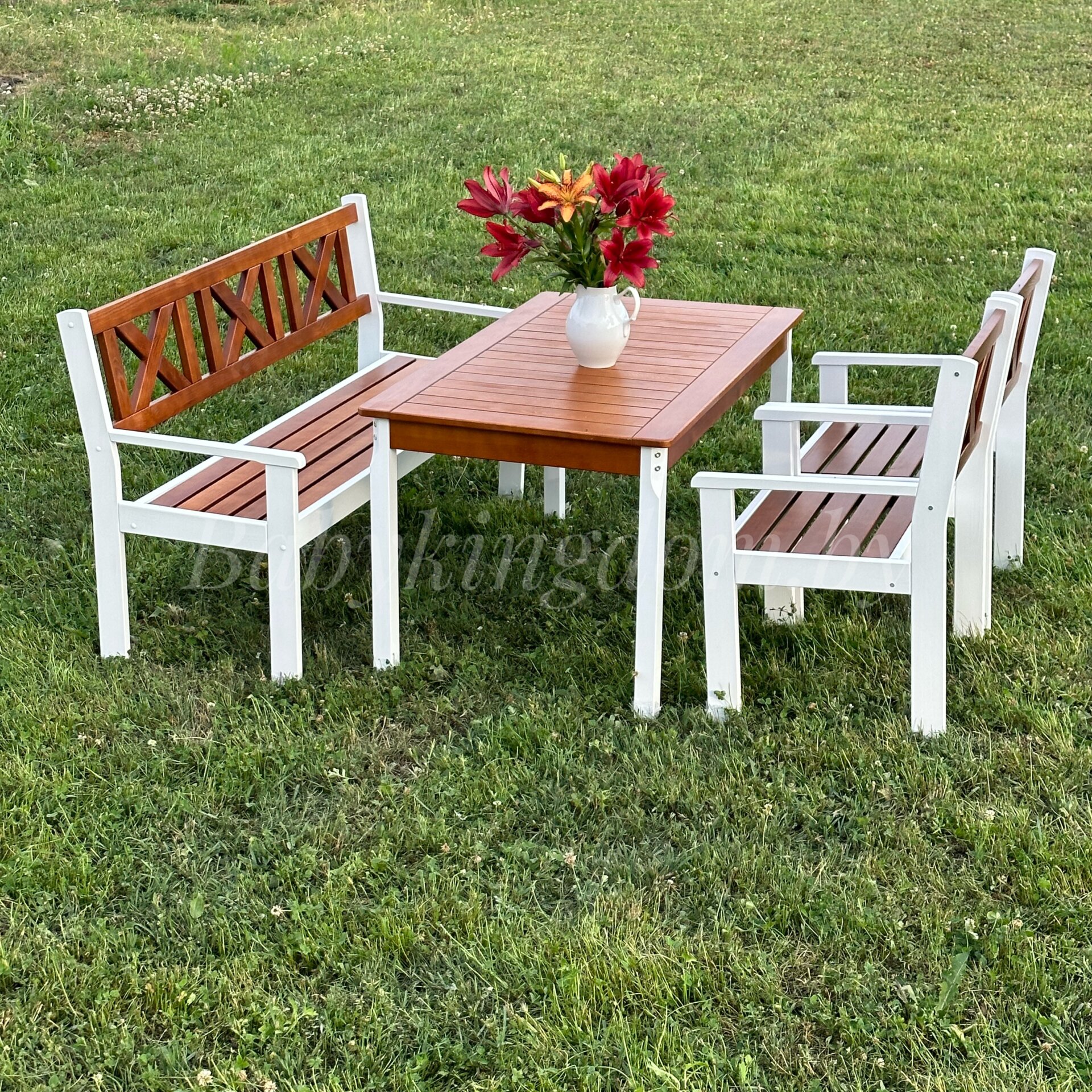 Комплектация: Стол, 2 лавки. Материал: металл, ДПК доска.