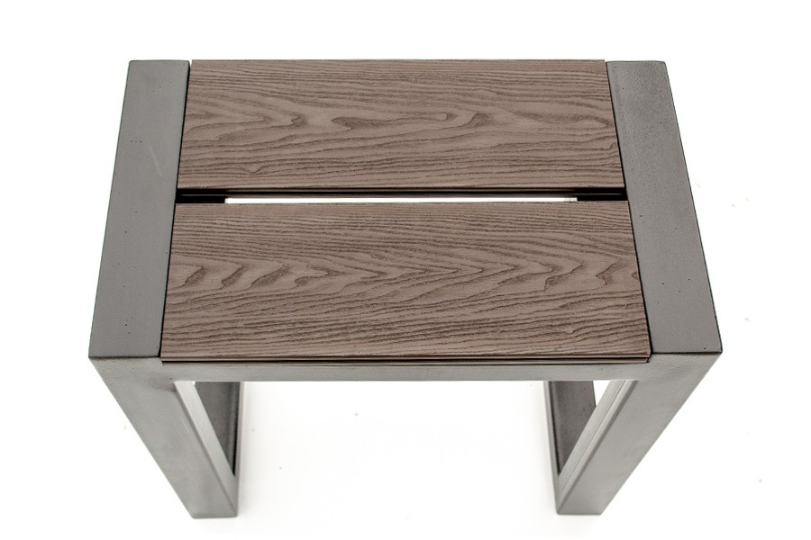 Уличную мебель “ВИКС” можно узнать по характерному признаку – наличию доски из древесно-полимерного композита (ДПК). Этот материал используется при изготовлении столешниц, сидений и различных декоративных элементов. Достоинством ДПК является его влагостойкость, устойчивость к морозам, прочность и эстетический внешний вид. В отличие от массива дерева, он не требует особого ухода, не выгорает на солнце.