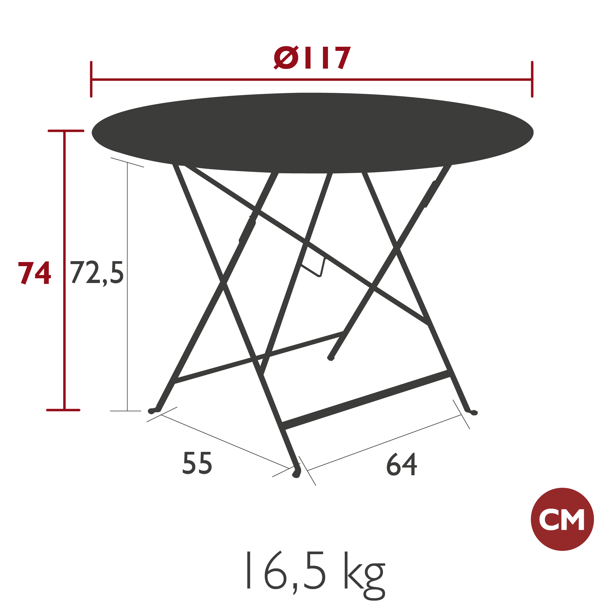 Размер (ДхШхВ): 117x117х74 см.