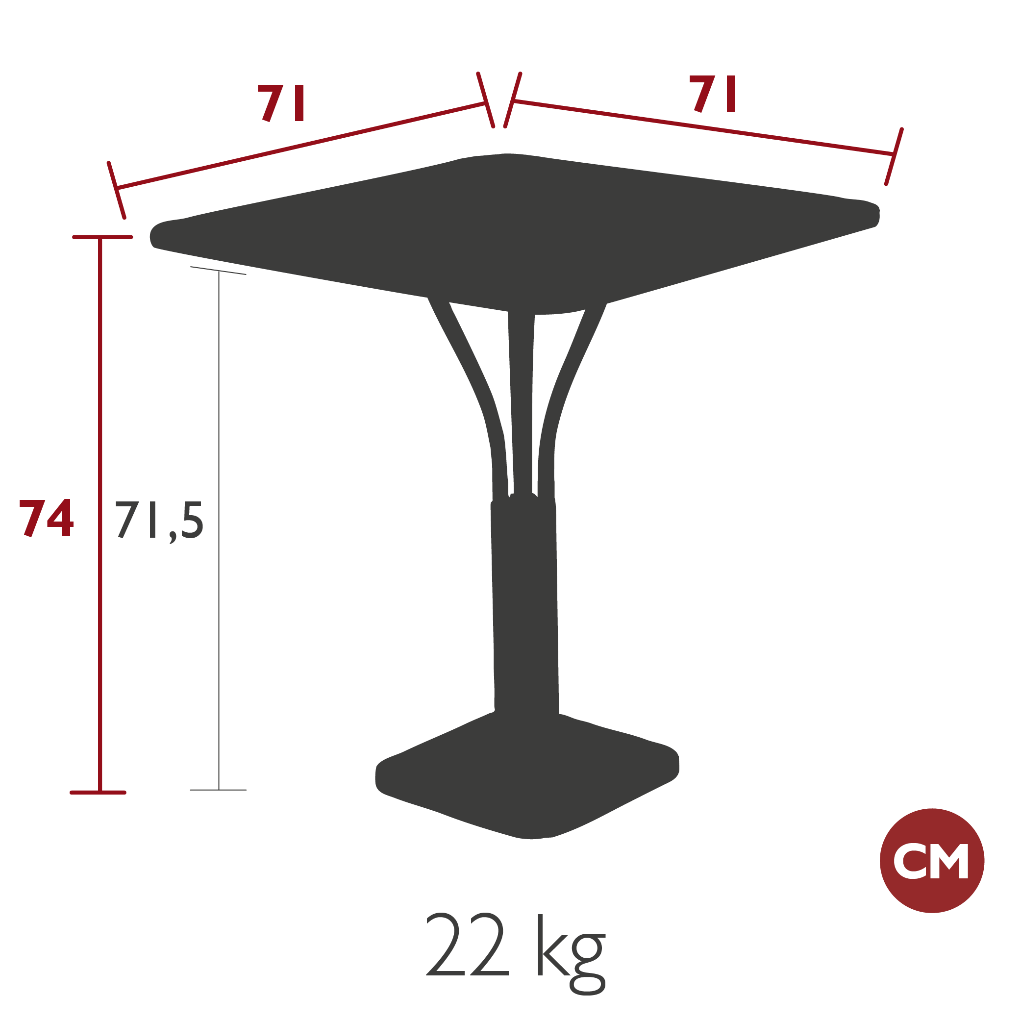 Размер (ДхШхВ): 71х71x74 см.