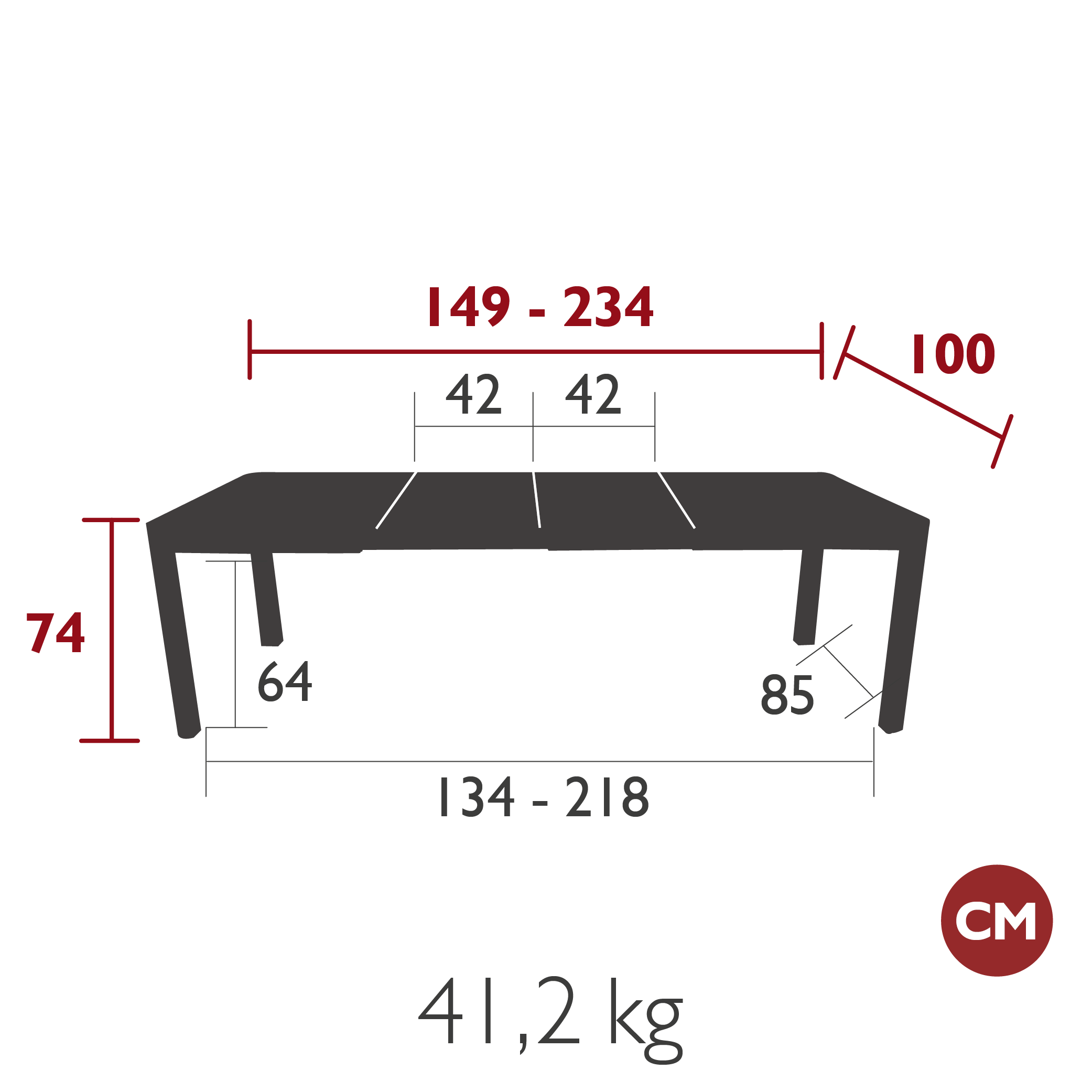 Размер (ДхШхВ): 149/234x100x74 см.