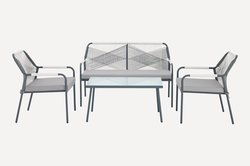 В комплекте: диван, кресло 2шт., журнальный стол. Материал: металл.