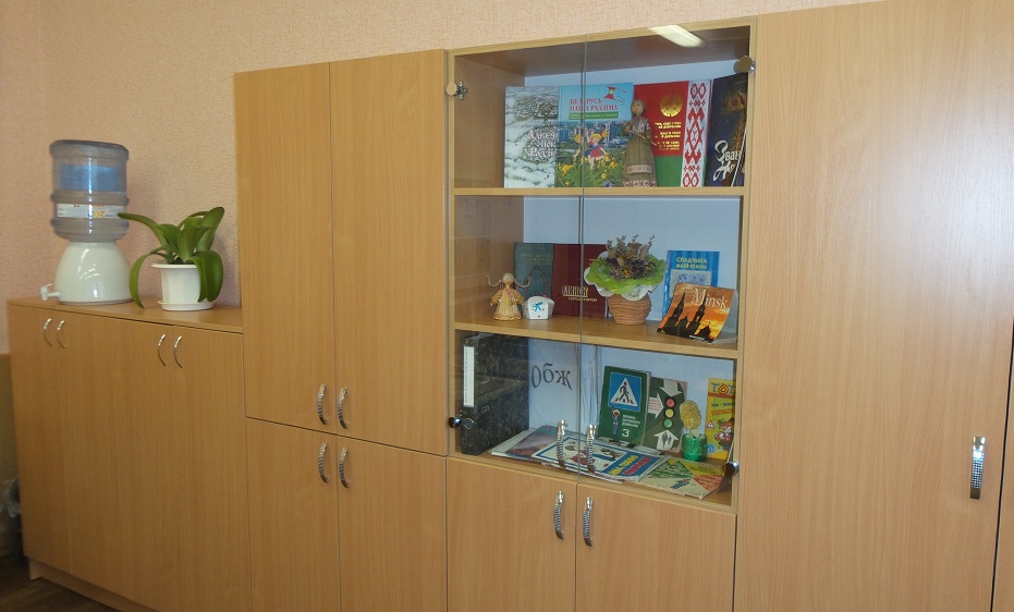 Современный функциональный набор мебели для учебного класса школы или другого учреждения образования включает в себя парты для учеников, учительский стол, стулья, встроенный стеллаж для учебников или школьных атрибутов. Мебель выполнена в теплом цвете, с интересной текстурой дерева.