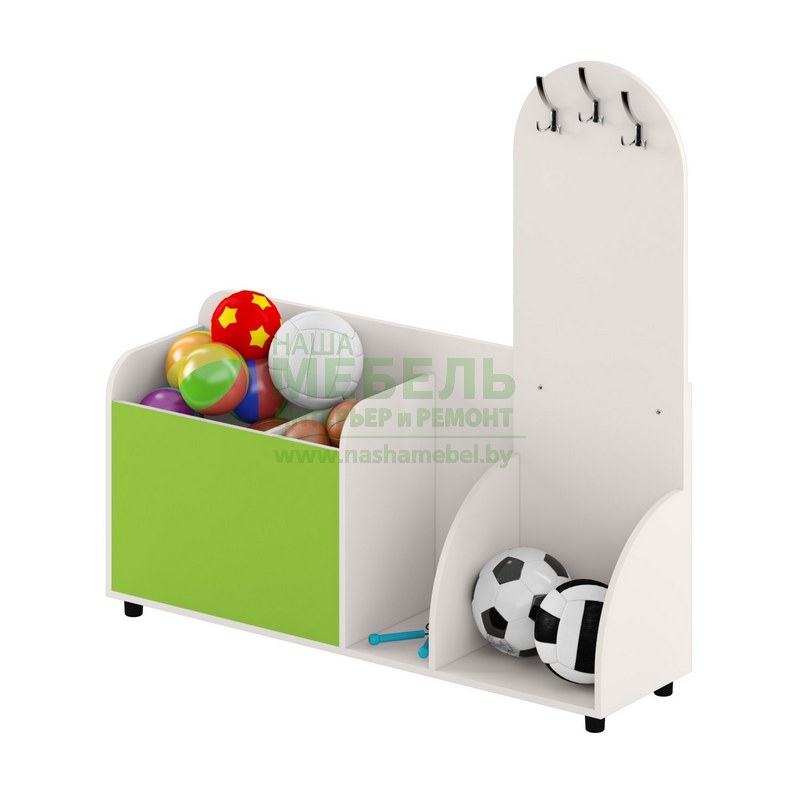 код 104454Удобный стеллаж для хранения мячей разных окружностей. Оснащен панелью с крючками.