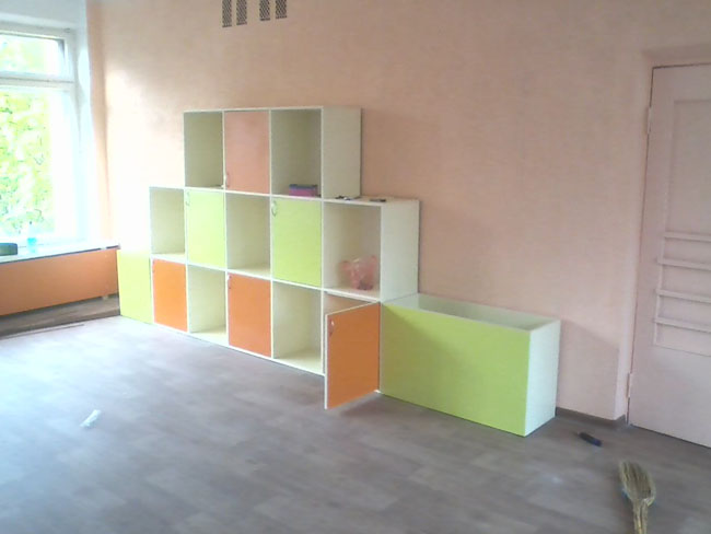 Трехступенчатая стенка с открытыми и закрытыми шкафчиками позволит разместить все игрушки и поделки малышей в детском саду. Горка изготовлена из высококачественного материала и не будет вызывать аллергии даже у самых маленьких. Яркие фасады оранжевого и зеленого цветов по достоинству оценят воспитатели, дети и их родители.