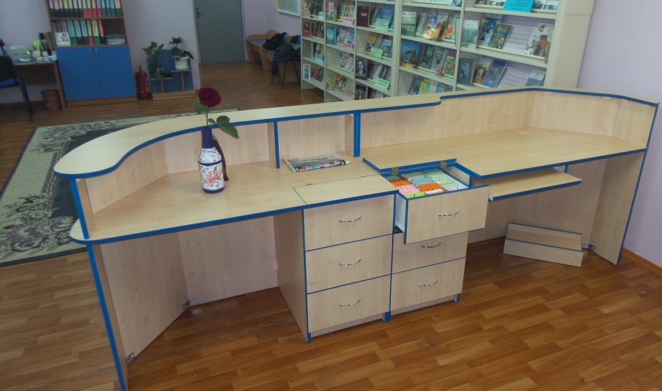 код 51727Комплект для читального зала. Стойка администратора. Удобные стеллажи.