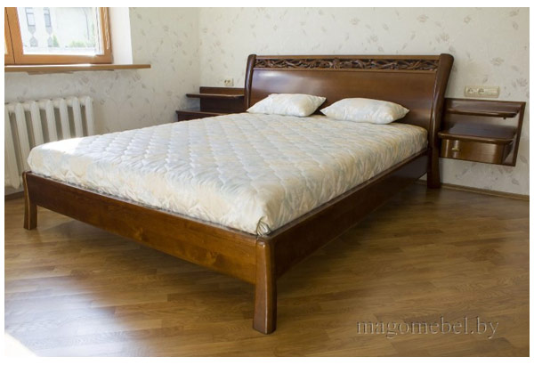 Кровать по желанию заказчика комплектуется настилом из массива дуба, а также матрасом.