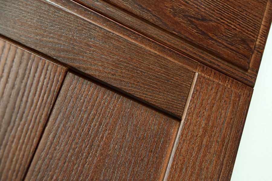 Рамка - массив ясеня, центральная часть - МДФ, облицованная шпоном ясеня.