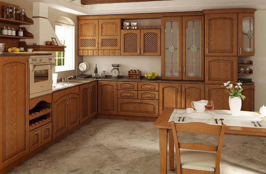 Фасады Bach EO марки Drewpol выполняются из натурального массива дуба или ольхи. Панели исполнены в классическом стиле. Филенчатая конструкция фасадов щедро украшена багетными элементами.
