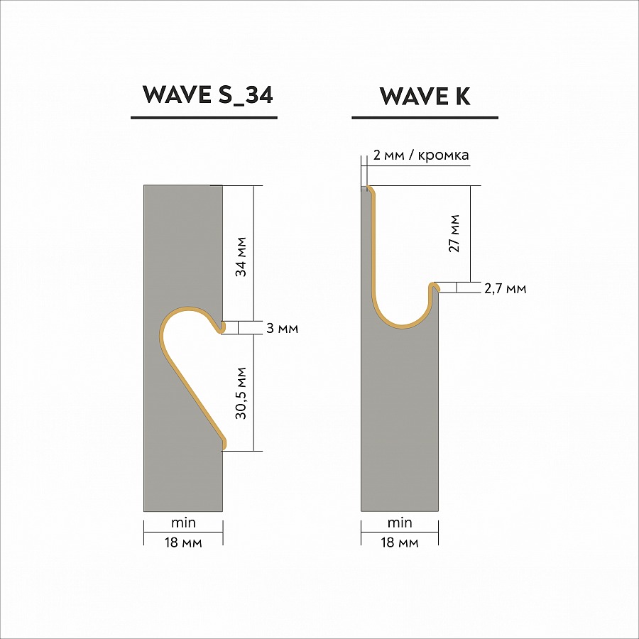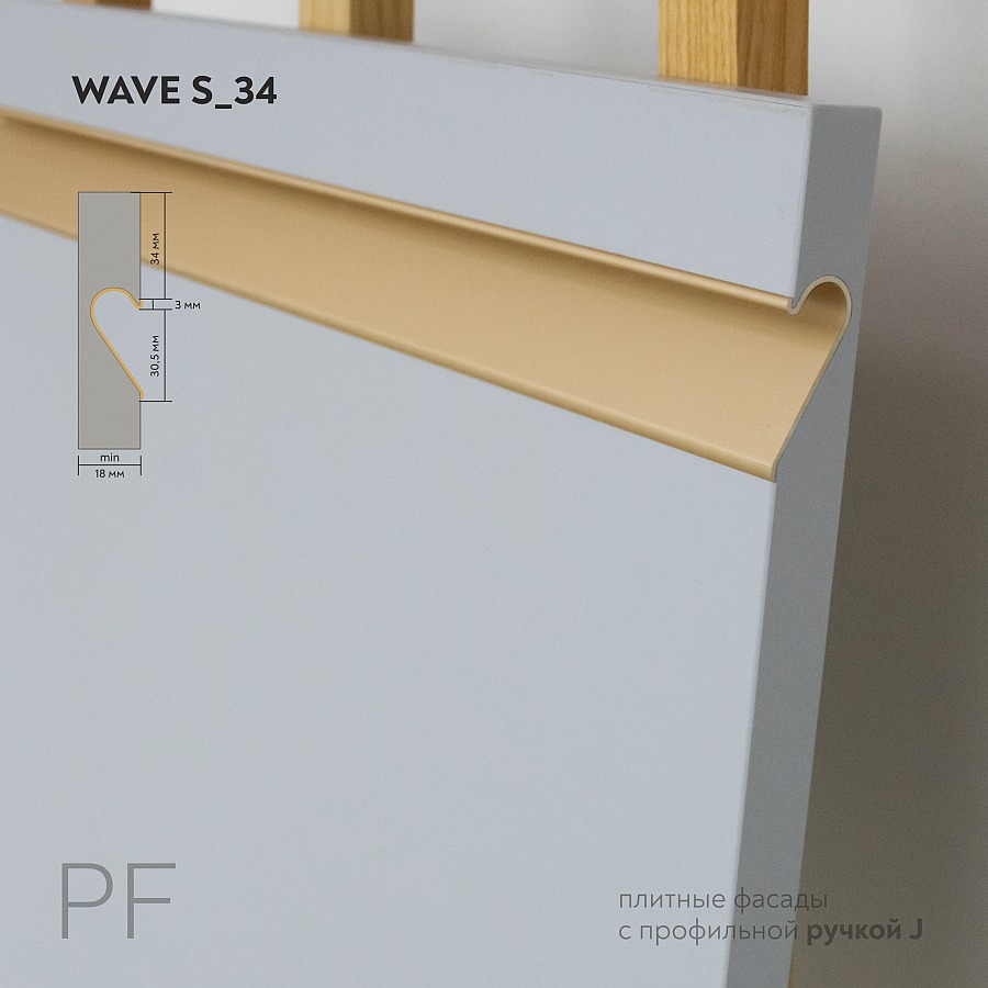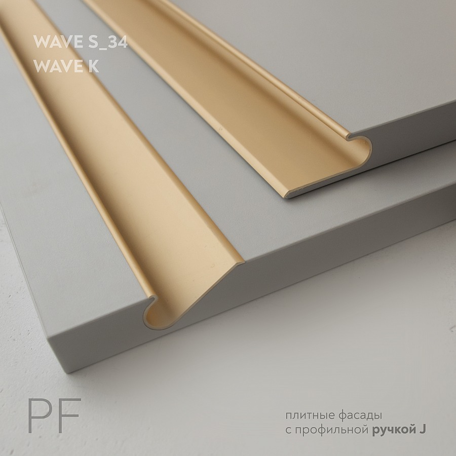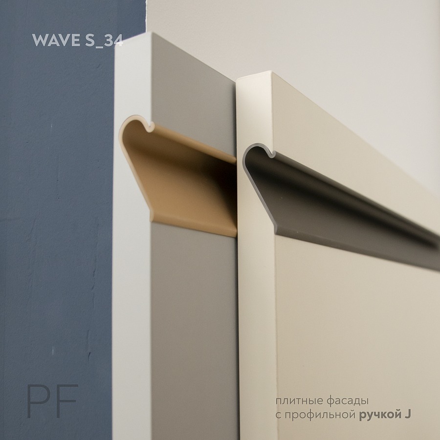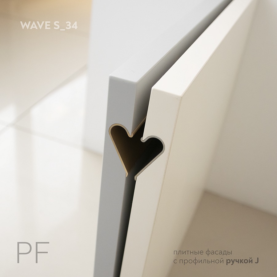 Фасады из плитных материалов с врезной профиль-ручкой тип J «Wave S_34»