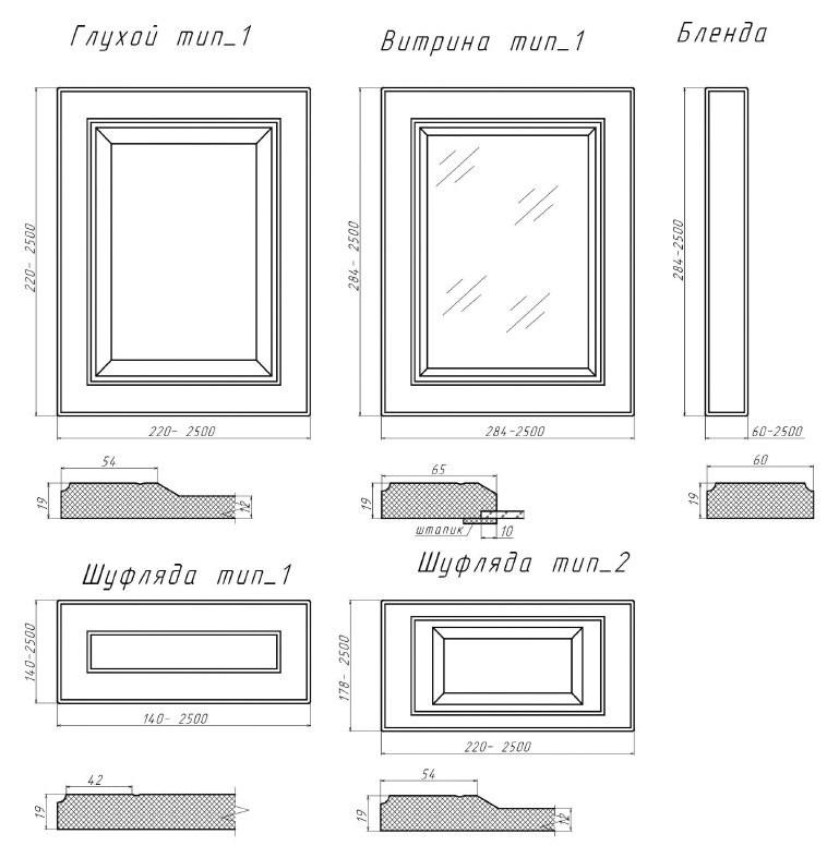 Тип фасада: глухой/витрина/шуфляда/бленда.