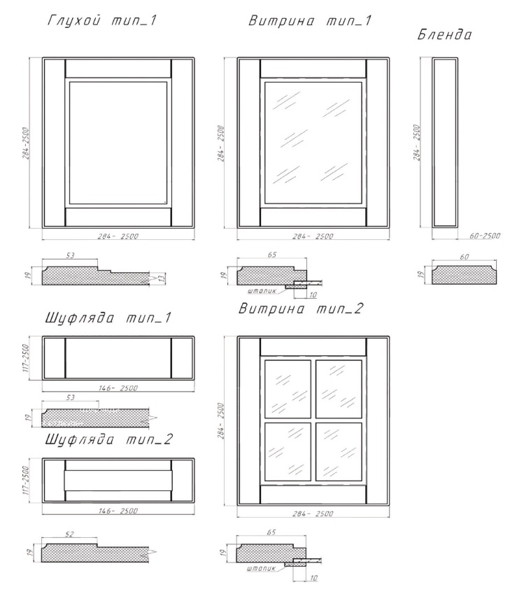 Тип фасада: глухой/витрина/шуфляда/бленда.