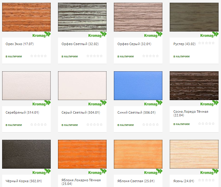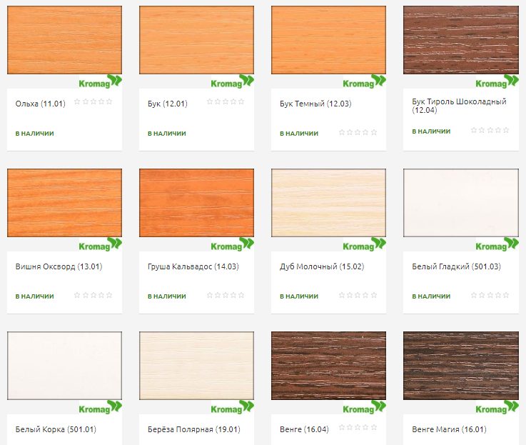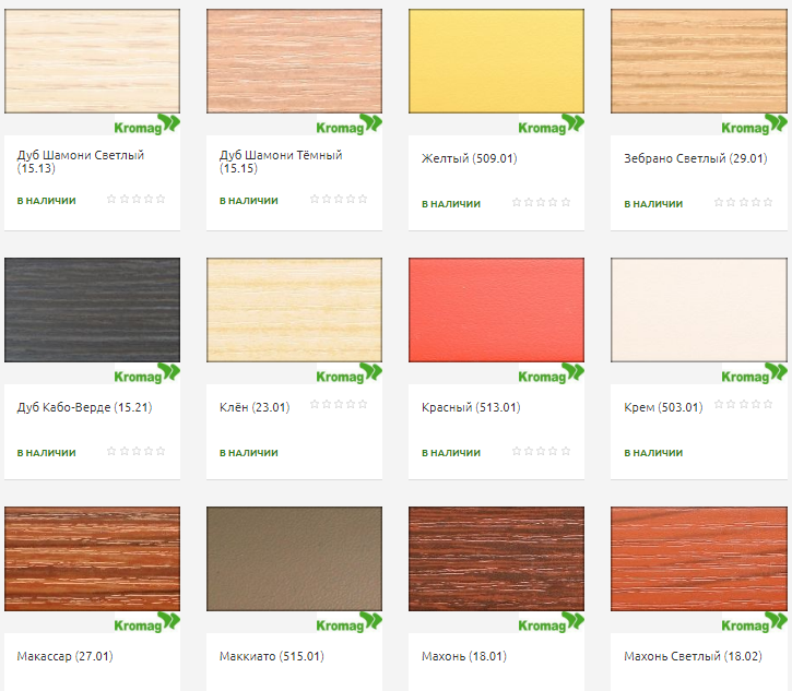 Мебельная кромка «Kromag» – это полоска ПВХ-пленки для скрытия необработанных торцевых поверхностей материалов. В ассортименте украинского производителя большой выбор пленок на любой цвет. Какой бы изощренной не была ваша корпусная мебель, удастся подобрать подходящий цвет и фактуру. Пленка крепится на клеевую основу или методом термического кромкования.