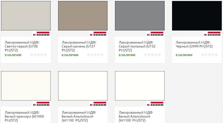 МДФ панели Egger из линейки «PerfecrSense» выполнены с использованием специального UV-лака, защищающего материал от прямого воздействия ультрафиолетовых лучей. Панели могут быть выполнены в матовом и глянцевом исполнении (MATT и GLOSS, соответственно). Такие панели успешно применяются в изготовлении мебели и мебельных фасадов.