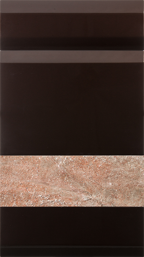Шпон для мебельных фасадов изготавливаются из быстрорастущих пород дерева. Также возможна облицовка фасадов инновационным каменным шпоном, натуральным сланцевым материалом с шершавой фактурой камня. Шпонированные деревом фасады не имеют присущих натуральной древесине недостатков, а каменные вставки придают интерьеру неповторимый внешний вид с природным мотивом.