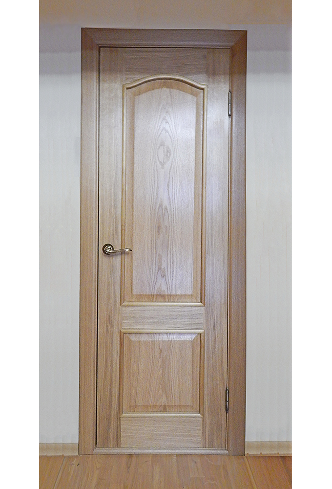 Двери из массива сосны шпонированные натуральным шпоном дуба. Изготовление по индивидуальному размеру полотна и коробки. Коробка любой ширины без изменения цены. Цена указана за полотно, коробку и наличник. Врезка фурнитуры в подарок.