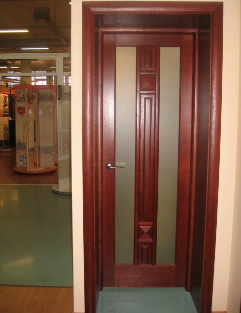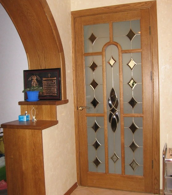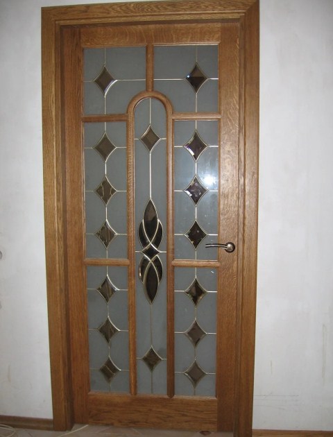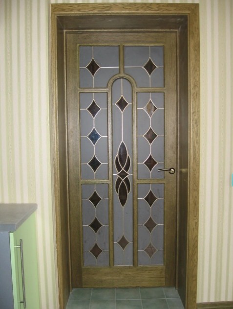 Дверь межкомнатная из массива с матовым узорным стеклом