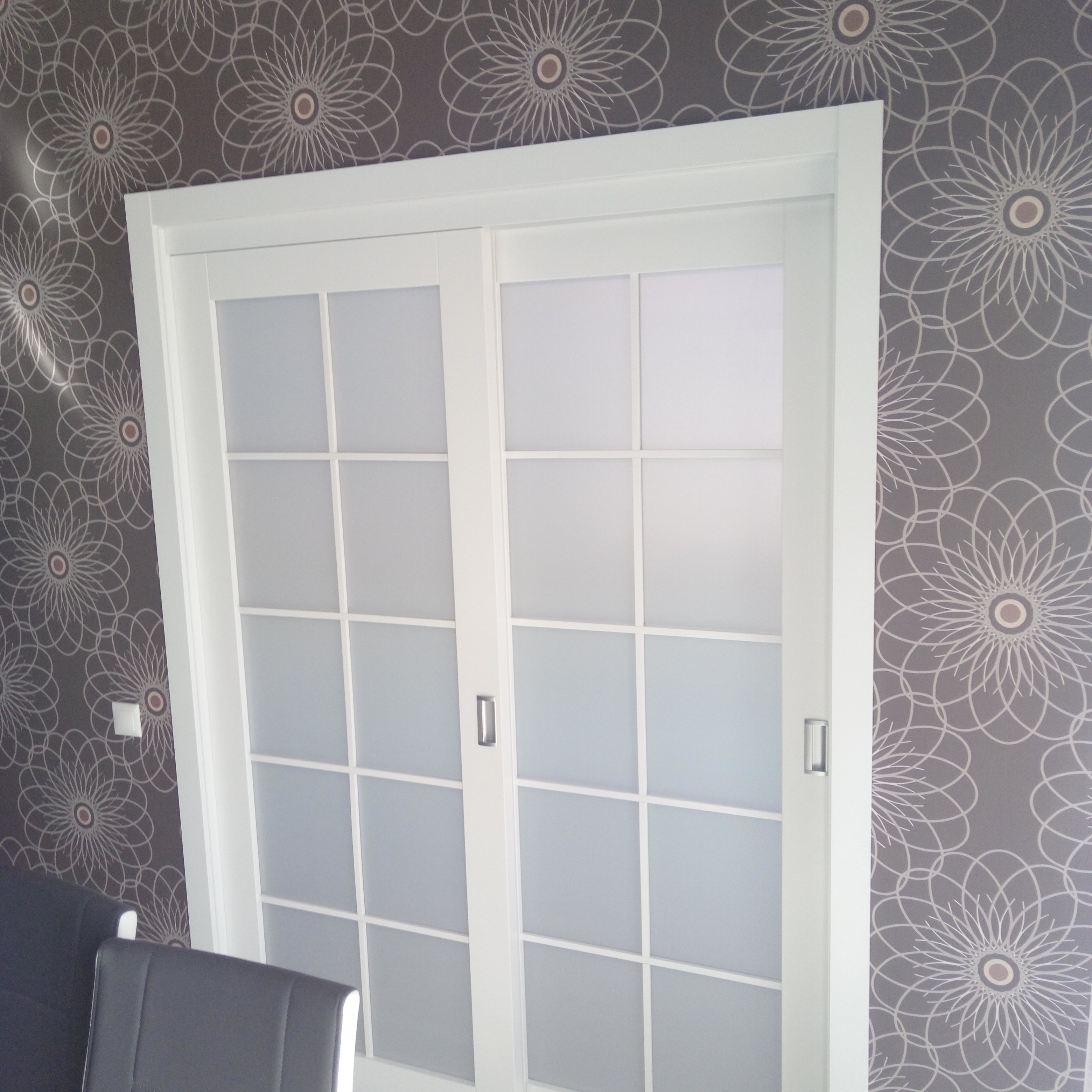 Профиль черного цвета, белое тонированное стекло. Две раздвижные створки.
