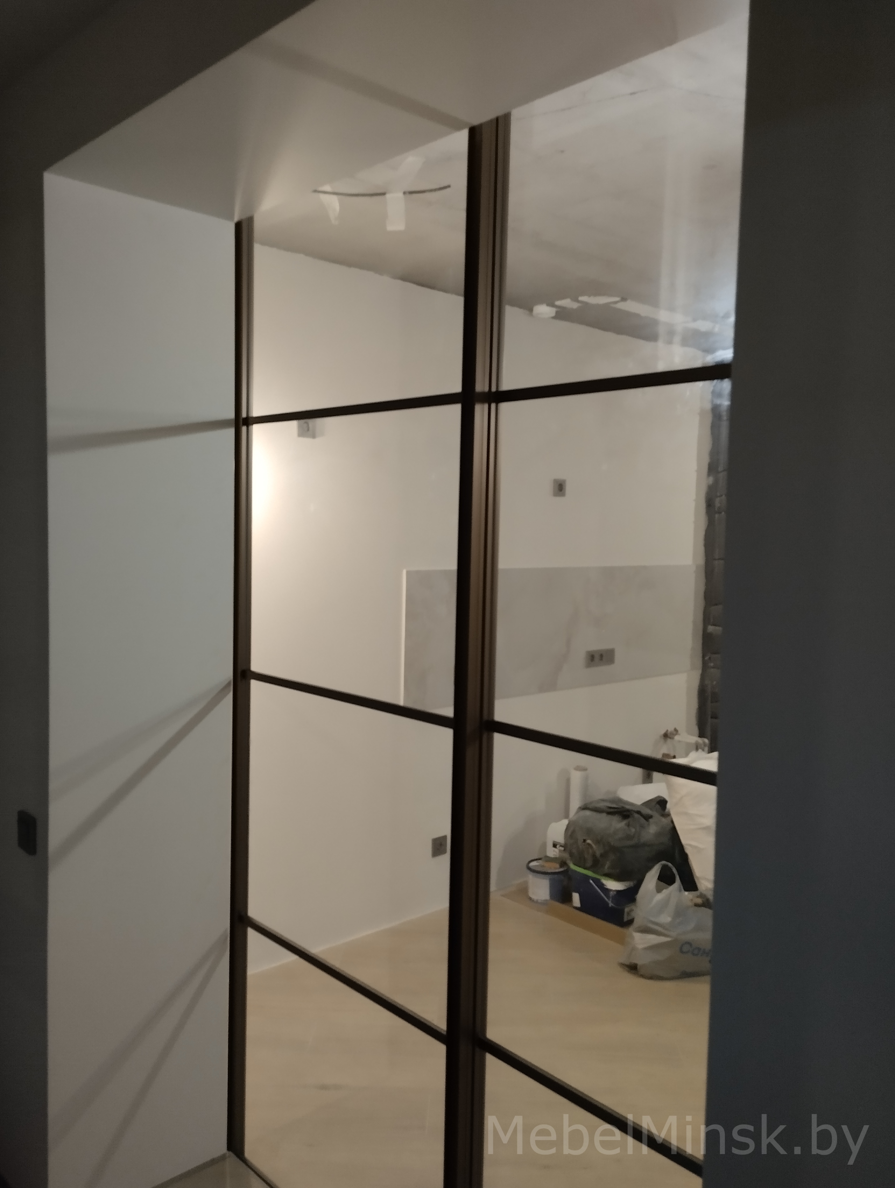 Стеклянная беспороговая дверь-купе
