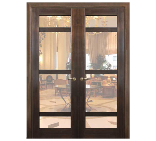 Профиль черного цвета, надежный раздвижной механизм, матовое стекло.