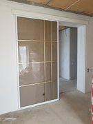 Широкая раздвижная дверь-перегородка из алюминия и стекла
